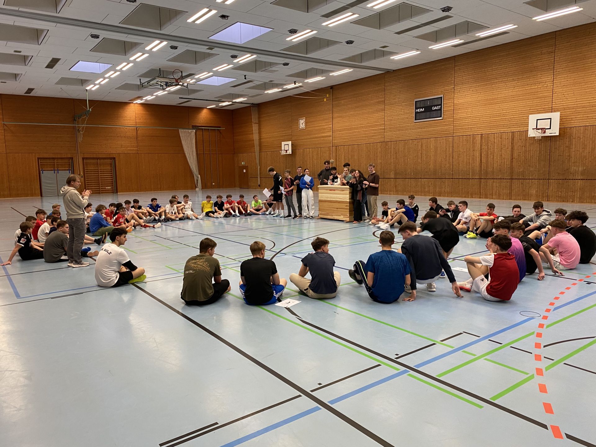 Ein voller Erfolg war das 3x3-Turnier der Klassenstufen 9 und 10 am Nachmittag des 17.März in der Stadionhalle. Es gab tolle Körbe und spannende Spiele zu beobachten. Der krönende Höhepunkt war das an Spannung nicht zu überbietende Finale zwischen den Teams „Die Öler“ der Klasse 9 und „21 Bumperz“ aus Stufe 10, das mit einem Buzzerbeater an die „21 Bumperz“ ging. Dank einer souveränen Spiel und Turnierleitung durch den Sportleistungskurs der Kursstufe 1 ging das Turnier reibungslos und ohne größere Verletzungen über die Bühne, so dass die dankenswerterweise anwesenden Schulsanitäter weitgehend beschäftigungslos blieben.