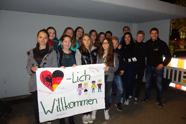 ZurückAm Dienstag, den 17. Oktober 2017 nahmen wir um 21.30 Uhr unsere albanischen Gäste mit Willkommensplakaten am Sulzer Bahnhof in Empfang. Nachdem wir uns begrüßt hatten, ging jeder albanische Austauschschüler mit seiner deutschen Gastfamilie nach Hause. Beim Abendessen konnte man sich nun endlich persönlich kennenlernen.