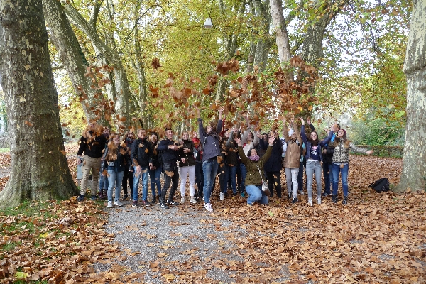 [/fusion_tab][fusion_tab title="23.10.-26.10." icon=""] Am Montag, den 23. Oktober besuchten wir die Universität in Tübingen. Dort konnten wir uns über die Möglichkeiten für internationale Studenten, aber auch über unsere Studienmöglichkeiten informieren. Anschließend besuchten wir eine Vorlesung um einen Eindruck vom „Uni-Alltag“ zu bekommen.Am Dienstag, den 24. Oktober fuhren wir mit dem Zug nach Herrenberg und wanderten in den Hochseilgarten. Nach einer Einweisung in Sicherheit und Verhalten konnte der Kletterspaß auf sechs verschiedenen Routen beginnen. Das Highlight war ein Sprung aus 13 Metern Höhe mit freiem Fall.