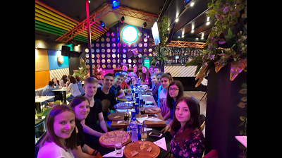 Da in der Deutschen Botschaft die deutschen Brückentage eingehalten werden, musste unser Besuch in der Botschaft auf Dienstag verschoben werden und somit hatten wir ein verlängertes Wochenende, das wir in den Gastfamilien verbrachten. Während am Freitag fast die ganze Gruppe das „TEG“, das gröβte Einkaufszentrum des Balkans besuchten, verbrachten fast alle das Wochenende am Meer, besichtigten schöne Städte oder besuchten das Color Day Festival.