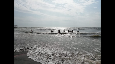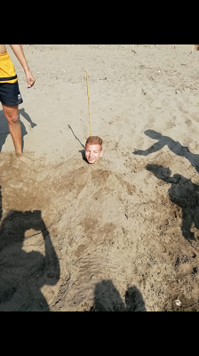 Obwohl das Wetter zunächst sehr schlecht war, gingen trotzdem viele ins Wasser. Im Laufe des Tages schwammen wir, spielten Fuβball und Volleyball, gingen am Strand spazieren und entspannten in der Sonne, die glücklicherweise später am Tag noch hervorkam.