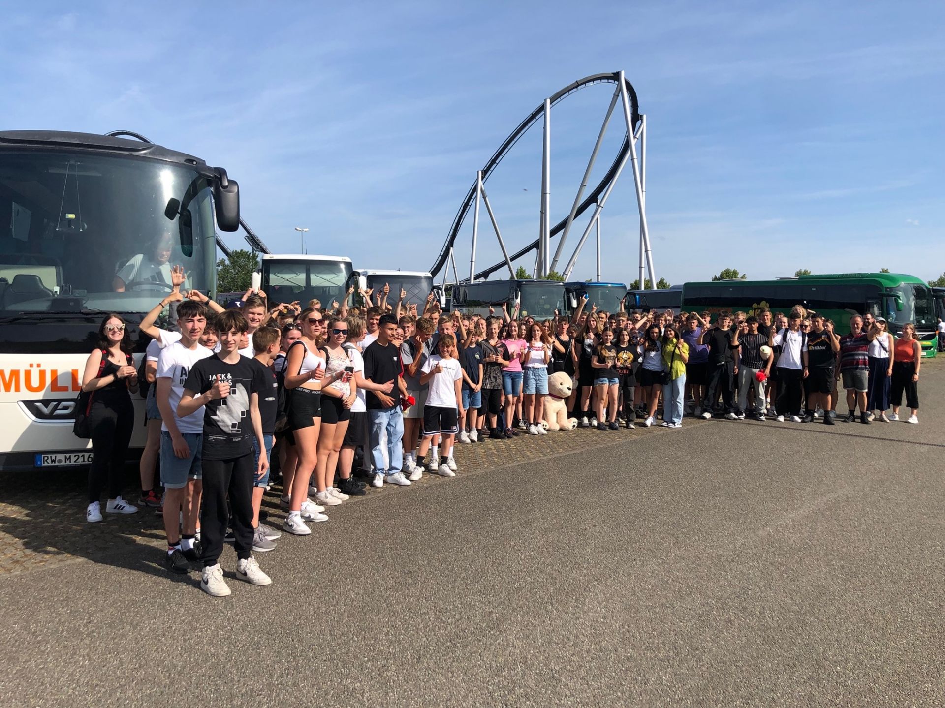 216 Schüler und Schülerinnen des Albeck-Gymnasiums besuchten am Dienstag, den 27.Juni 2023, den Europa Park Rust. Organisiert wurde der Ausflug von der SMV. Während die Abiturienten und Abiturientinnen an ihren mündlichen Abiturprüfungen tüfftelten, genoss die Schülerschaft der Mittel- und Oberstufe bei herrlichem Sommerwetter die zahlreichen Attraktionen. Von erfrischenden Wasserbahnen, über rasante Achterbahnen bis hin zu beschaulichen aber aufwendig und liebevoll gestalteten Bahnen war für jeden Geschmack etwas dabei. Gemeinsam war allen Beteiligten die gute Laune und der Spaß, sowie die Erkenntnis, dass der Tag ein voller Erfolg war.