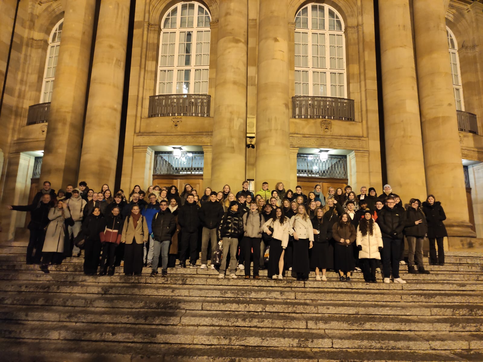 ZurückAm 22. November unternahm die Klassenstufe 11 einen erlebnisreichen Ausflug in die Staatsoper Stuttgart. Schon früh am Morgen machten sie sich auf den Weg in die Landeshauptstadt Stuttgart, um zahlreiche Einblicke in die Welt der Oper zu gewinnen. Um die große Menge etwas aufzuteilen, machten die Klassen 11c und 11b zunächst den Workshop und die Klasse 11a die Opernhausführung. Der Workshop bot den Schülern die Möglichkeit, selbst aktiv zu werden. Sie schlüpften in verschiedene Rollen der Oper und konnten beispielsweise das geplante Stück des Abends „Il Trovatore“ selbst schauspielern. So gewannen sie einen intensiven Eindruck in die Tätigkeiten einer Oper. Danach gab es eine kurze Pause, wo die Schüler eigenständig die Stadt erkundigen konnten. Anschließend ging es weiter mit der Opernhausführung. Hierbei hatten die Klassen die Gelegenheit, das Opernhaus in einer ganz neuen Perspektive zu betrachten. Sie durften hinter die Kulissen blicken und konnten somit die Bühne von hinten, die Werkstätte direkt im Haus oder auch die Malereien für eine Opernaufführung anschauen. Dieses Erlebnis ist für den normalen Besucher nicht möglich und intensivierte dadurch ihr Verständnis für die Oper. Um 19 Uhr begann die Opernaufführung: „Il Trovatore“. Die Schule gab auch anderen Schülern die Gelegenheit, die Vorstellung zu erleben. Die Klassen saßen an relativ kostspieligen Plätzen, für die sie lediglich 10 Euro bezahlten und hatten so einen ausgezeichneten Blick auf die Bühne. Die Vorstellung war der Höhepunkt des Tages. Für viele der Jugendlichen war das die erste Opernaufführung und sie konnten ihr vorher erlerntes Wissen nutzen, um die Oper in voller Pracht zu erleben. Nach einem ereignisreichen Tag traten die Schüler müde, aber voller Eindrücke und Erinnerungen die Rückfahrt nach Sulz an. Dieses Erlebnis wird viele nachhaltig beeinflusst haben.