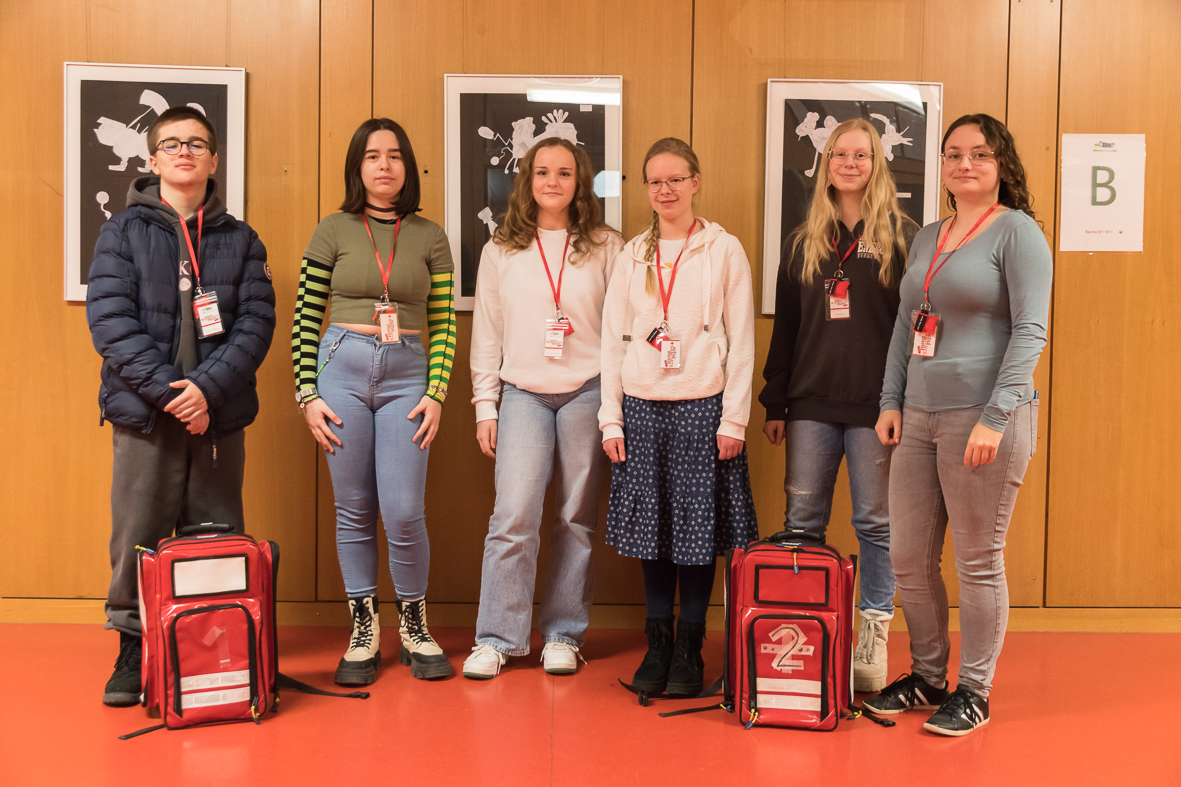 Neu mit dabei sind ab sofort Medeea Dumitrache, Pia Haas, Leonie Kreher, Simon Sackers, Ann-Marie Schreiner und Hanna Seidel. Sie haben alle im ersten Schulhalbjahr eine Ausbildung in Erster Hilfe erhalten und sind ab sofort für große und kleine Patientinnen im Einsatz.