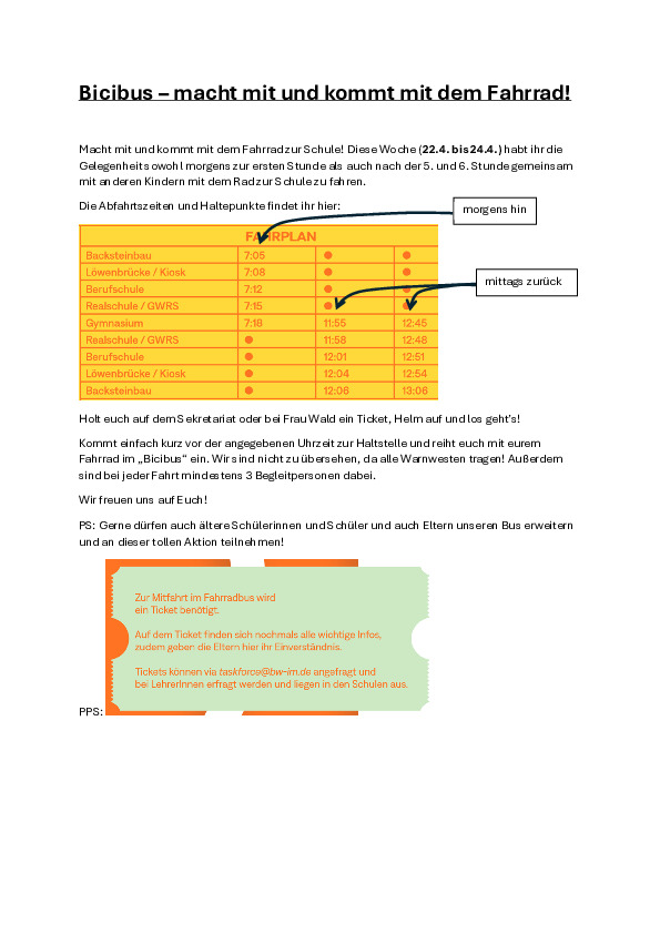 Bicibus – macht mit und kommt mit dem Fahrrad!