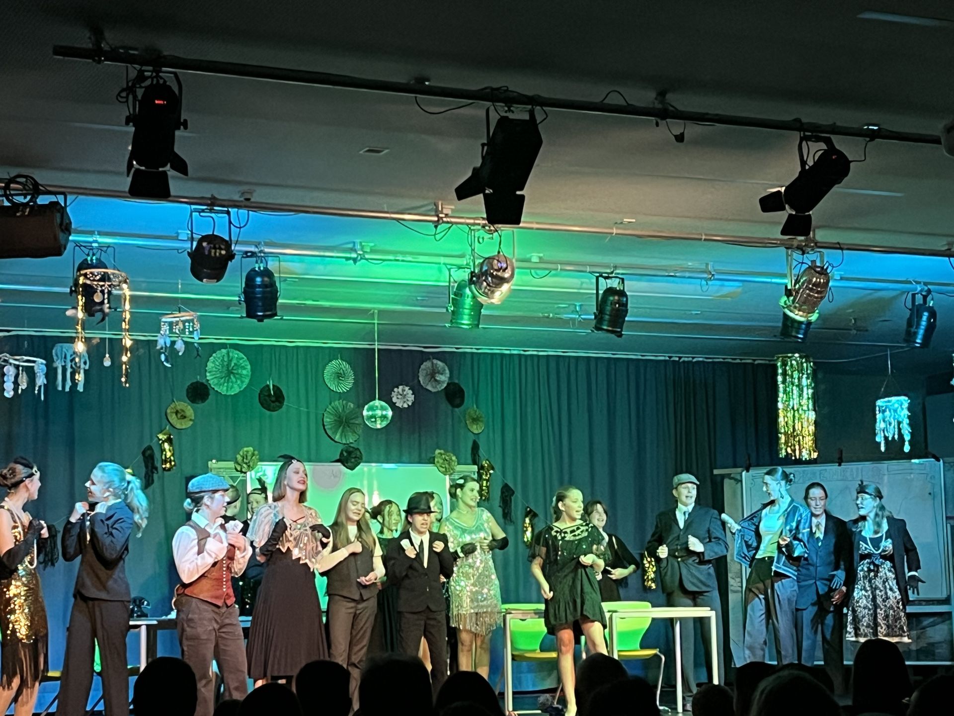 So wurde die zweite Aufführung von The Great Gatsby zu einem Abend, der nicht nur musikalisch und darstellerisch begeisterte, sondern auch bewies, wie viel Kreativität und Leidenschaft in schulischen Projekten steckt. Das Publikum dankte mit lang anhaltendem Applaus – und vielleicht auch mit dem heimlichen Wunsch, noch ein wenig länger in den funkelnden Zwanzigern zu verweilen.