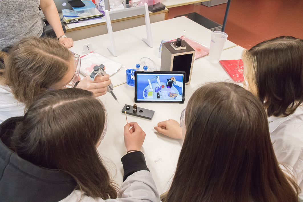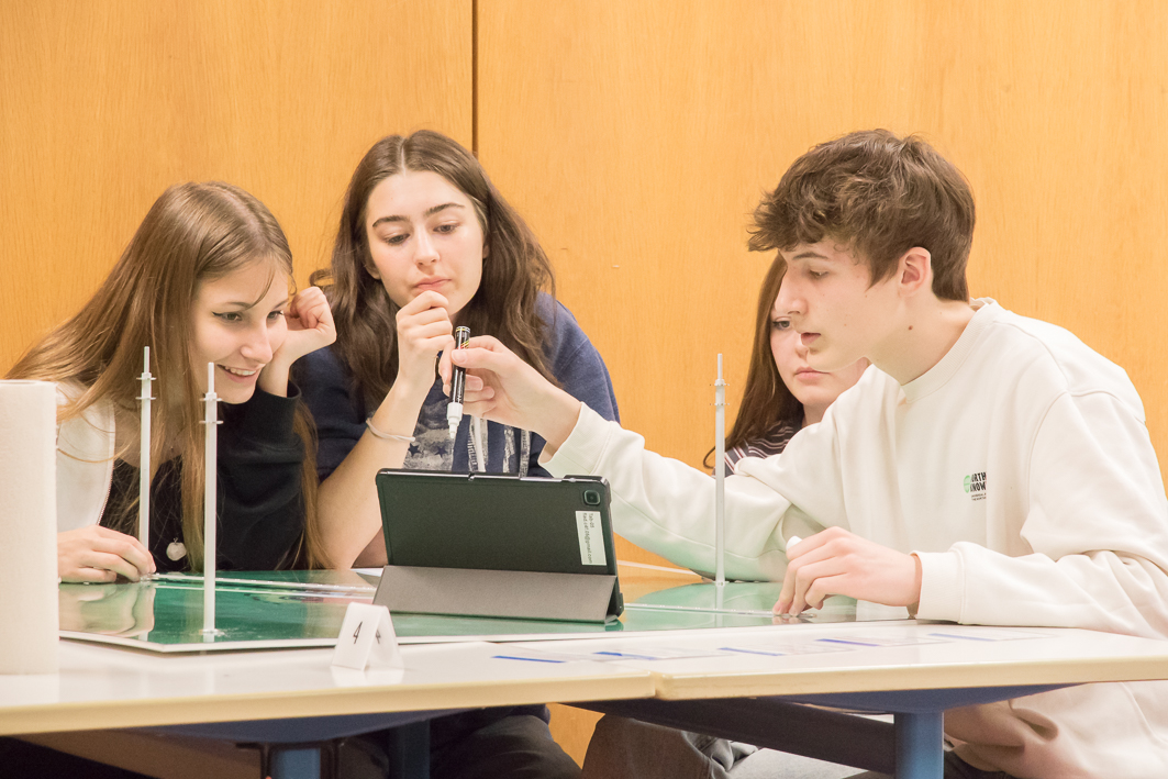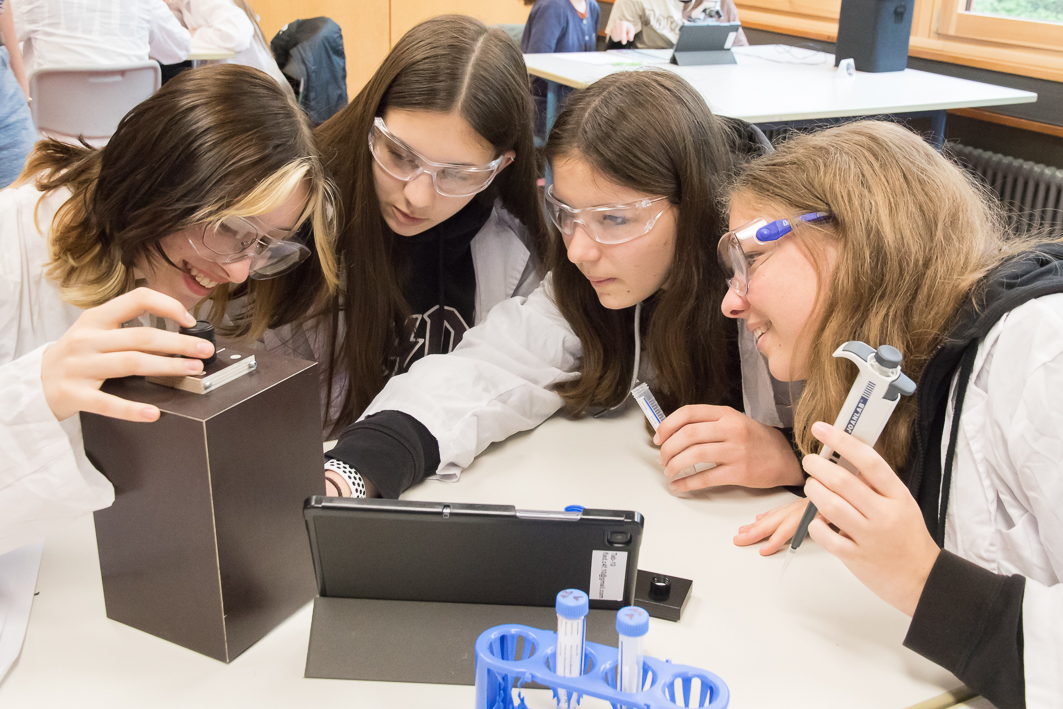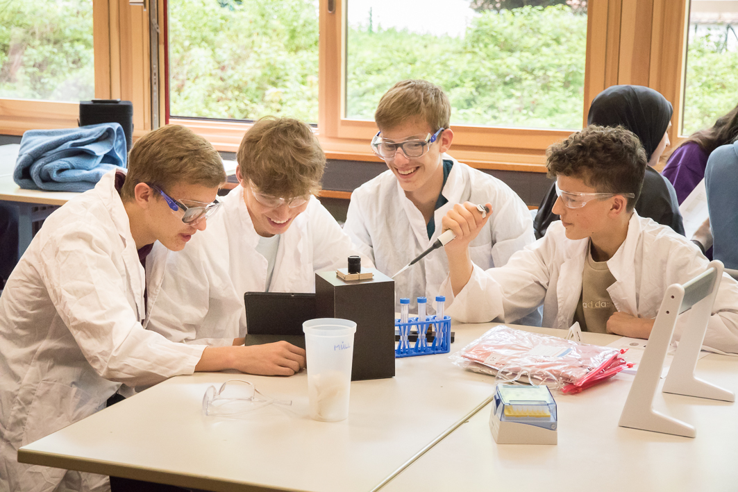 In einem ergänzenden Workshop erfuhren die Elftklässler, dass nicht nur Polizisten, sondern auch Naturwissenschaftler bei der Aufklärung von Verbrechen helfen. Mit forensischen Methoden wie Haar- und Faser-Analyse oder der Untersuchung von Fingerabdrücken mussten sie Beweisstücke zur Aufklärung eines fiktiven Mordfalles zusammentragen und ihn durch Kombinationsvermögen lösen. Bei der Anwendung der forensischen Techniken lernten sie deren naturwissenschaftlichen Hintergrund kennen und erfuhren außerdem, wie die Digitalisierung die Forensik verändert.