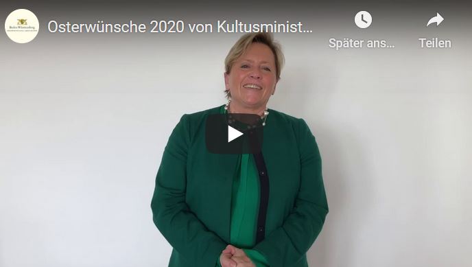 Kultusministeriun Eisenmann wünscht frohe Ostern und gesunde Osterferien