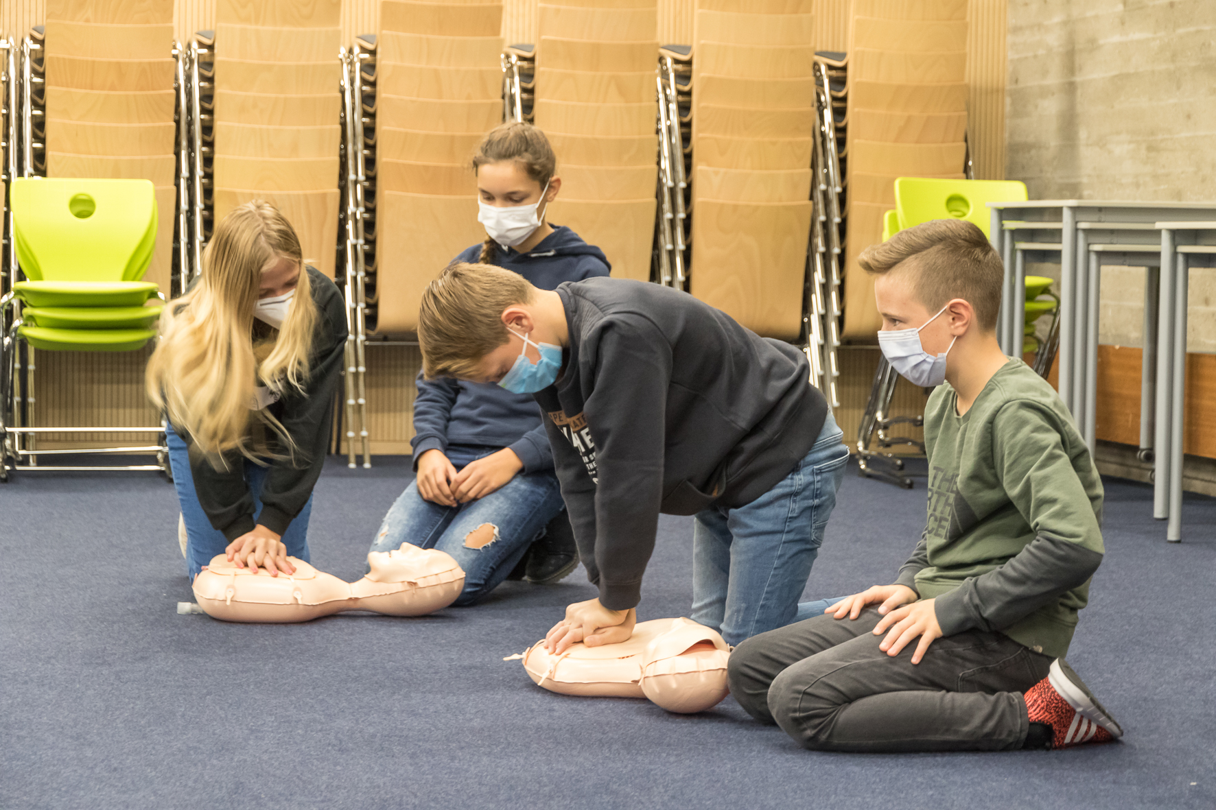 Dass man auch im jungen Alter Großes bewirken kann, haben die Siebt- und Achtklässler eindrücklich bewiesen. Bei der Herzdruckmassage an den Übungspuppen standen sie manchem Erwachsenen in nichts nach. Es ist ein gutes Gefühl, so viele löwenstarke Retter bei uns am Albeck-Gymnasium zu wissen!