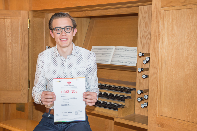 Mit den Orgelwerken von J. S. Bach (Der Tag, der ist so freudenreich), C. V. Stanford (Prelude and Fugue in C minor), S. Karg-Elert (Kyrie eleison) und Jean Langlais (Incantation pour un jour Saint) überzeugte Nico die Jury und erlangte einen ersten Preis. Damit hat er sich für die Weiterleitung zum Bundeswettbewerb, der Ende Mai in Bremen stattfindet, qualifiziert.