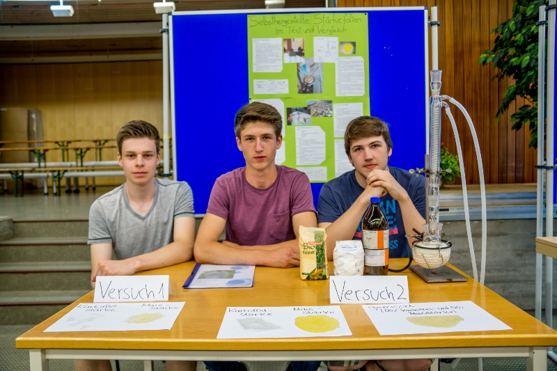 ZurückWie jedes Jahr präsentierten auch diesmal die Schüler der Klassenstufen 10 ihre Projekte, die sie im Rahmen des Naturwissenschaft-und-Technik-Unterrichts erarbeitet hatten, einem interessierten Publikum. Über ein halbes Jahr Arbeit steckt in den Projekten, bei denen vor allem Kreativität und Eigeninitiative gefragt sind. Und so fand sich auch am vergangenen Mittwoch wieder Interessantes aus dem Bereich Biologie (z.B. eine Mini-Biogasanlage oder eine Wasseranalyse) aus dem Bereich Physik (z.B. eine sich automatisch nach dem Sonnenstand drehende Solaranlage oder eine Versuchsreihe zur Aerodynamik von Raketen) und aus dem Bereich Chemie (z.B. der Vergleich der Effizienz von E10- und E5-Kraftstoff oder eine Untersuchung des ökologischen Mehrwerts von Biodiesel anstatt konventionellen Diesels). Aber auch ganz anwendungsorientierte Projekte fanden sich wie die Herstellung von Folien aus Mais- oder Kartoffelstärke, Kaugummi ohne Aspartam, Naturshampoo, einer ökologisch verträglichen Wasserfilteranlage oder Klebstoff aus Gummibärchen. Überzeugt haben aber nicht nur die vielen Projekte, sondern auch die begeisternde Art, mit der die Schüler ihre Projekte einem staunenden Publikum vorgeführt haben. Es wäre schön, wenn auch im kommenden Jahr der Besucherandrang ähnlich groß ist, vielleicht finden ja noch ein paar Eltern und andere Interessierte mehr den Weg in die Schule. Es lohnt sich bestimmt.
