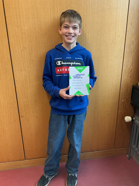 ZurückUnter den besten Lesern der Klassen 6 des Albeck Gymnasiums konnte sich beim Schulentscheid des Vorlesewettbewerbs 2025 Rafael Dieringer aus der Klasse 6c durchsetzen.