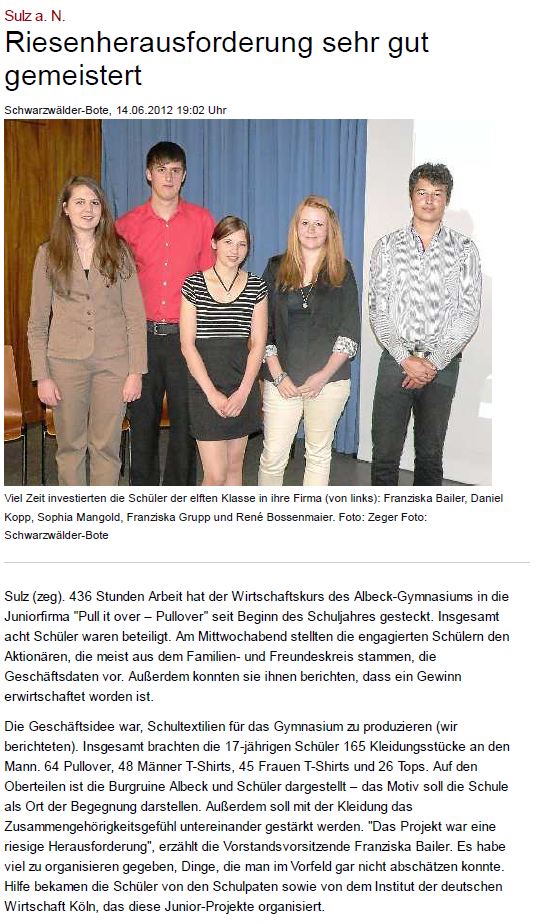 Riesen Herausforderung sehr gut gemeistert (SchwaBo 14/06/2012)