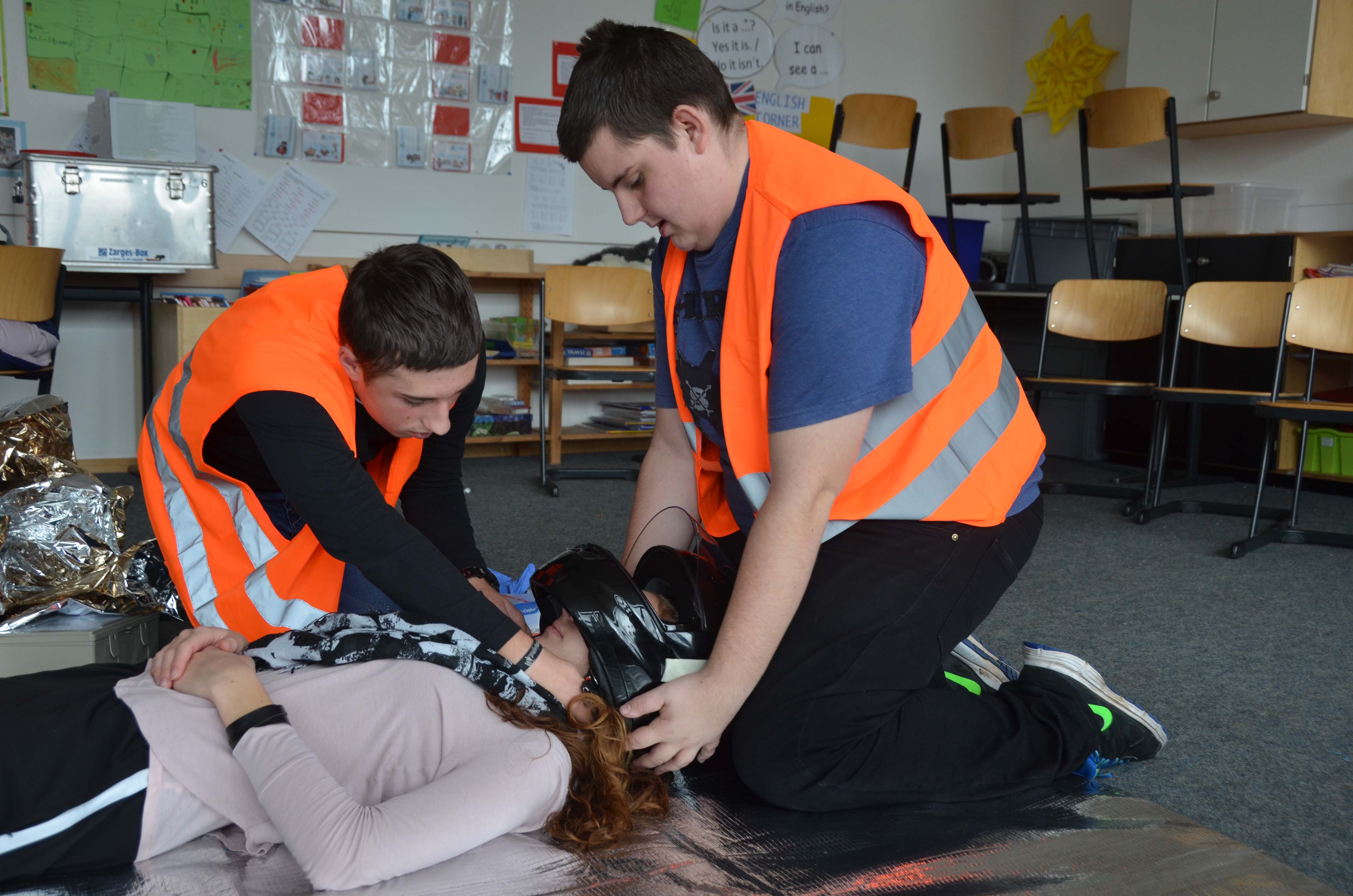 ZurückAm Samstag, den 21. November, trafen sich wieder Schulsanitätsgruppen aus dem ganzen Kreis in Rottweil an der Konrad-Witz-Schule. Das Jugendrotkreuz organisierte den Tag mit vielen Stationen, an denen die angereisten Schülerinnen und Schüler vieles lernen und üben konnten. So gehörte ein bewusstloser Motoradfahrer genauso wie eine Verstauchung zu den Programmpunkten des Tages. An anderen Stationen konnte man den Blutdruck messen oder erfuhr einiges über das Jugendrotkreuz. Die Helfer waren sehr engagiert, hatten einiges an Material dabei und gestalteten viele Notfallsituationen sehr realtistisch. In der Pause gab es eine kleine Verpflegung und nach diesem erfüllten Vormittag ging auch unsere Gruppe vom Albeck-Gymnasium fröhlich um die Mittagszeit wieder nach Hause.