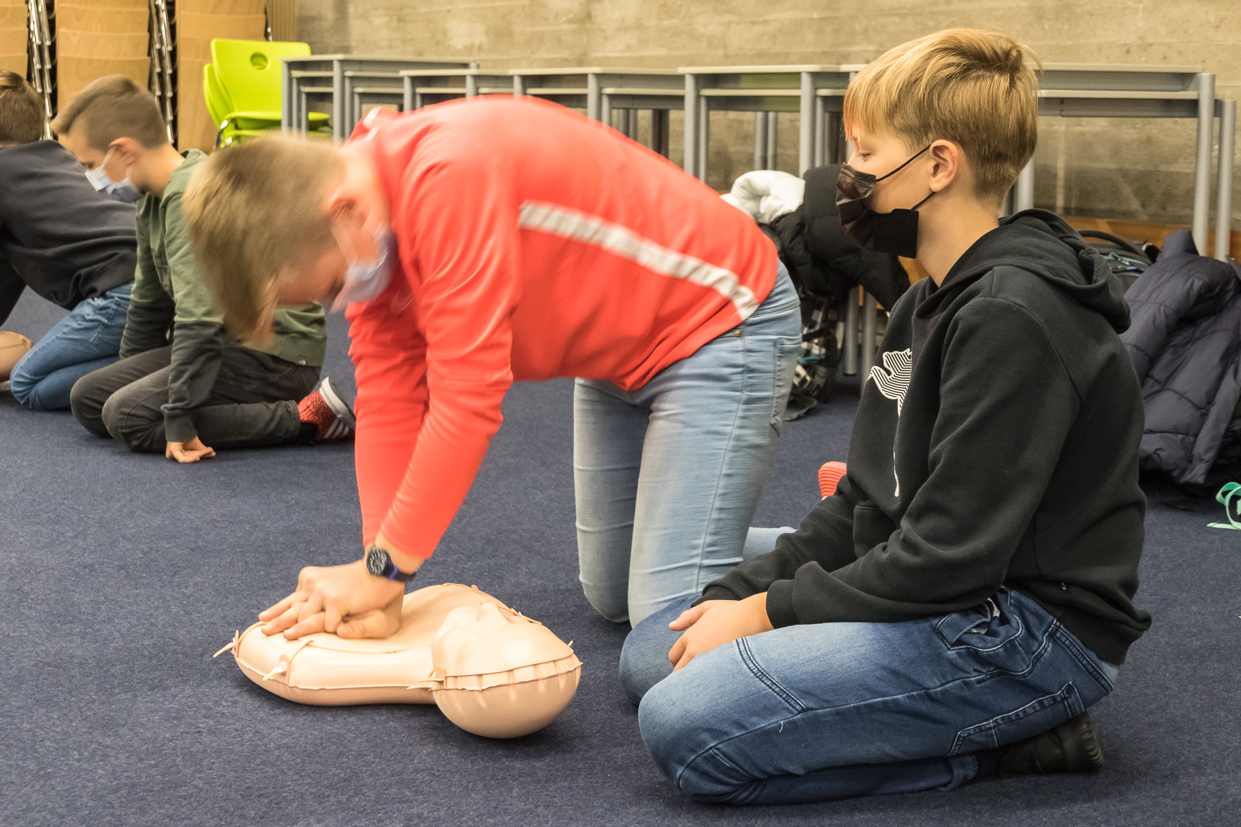 ZurückEtwa 60 000 Menschen erleiden in Deutschland jedes Jahr einen Herz-Kreislauf-Stillstand. Wie man in einer solchen Situation richtig handelt und womöglich Leben retten kann, haben die Schülerinnen und Schüler der Klassenstufen 7 und 8 kürzlich bei „Löwen retten Leben“ erfahren. Das Motto dabei lautete: „Prüfen, Rufen, Drücken“ Prüfen, ob die bewusstlos zusammengebrochene Person noch reagiert und atmet. Unter 112 den Rettungsdienst rufen. Fest, mindestens 100-mal pro Minute in der Mitte des Brustkorbs drücken und nicht aufhören, bis Hilfe eintrifft. Dass man auch im jungen Alter Großes bewirken kann, haben die Siebt- und Achtklässler eindrücklich bewiesen. Bei der Herzdruckmassage an den Übungspuppen standen sie manchem Erwachsenen in nichts nach. Es ist ein gutes Gefühl, so viele löwenstarke Retter bei uns am Albeck-Gymnasium zu wissen!