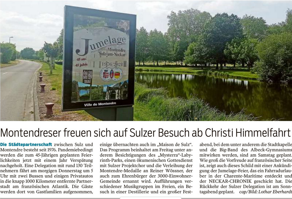 Montendreser freuen sich auf Sulzer Besuch ab Christi Himmelfahrt (Südwest Presse 25/05/2022) Zurück 25.05.2022