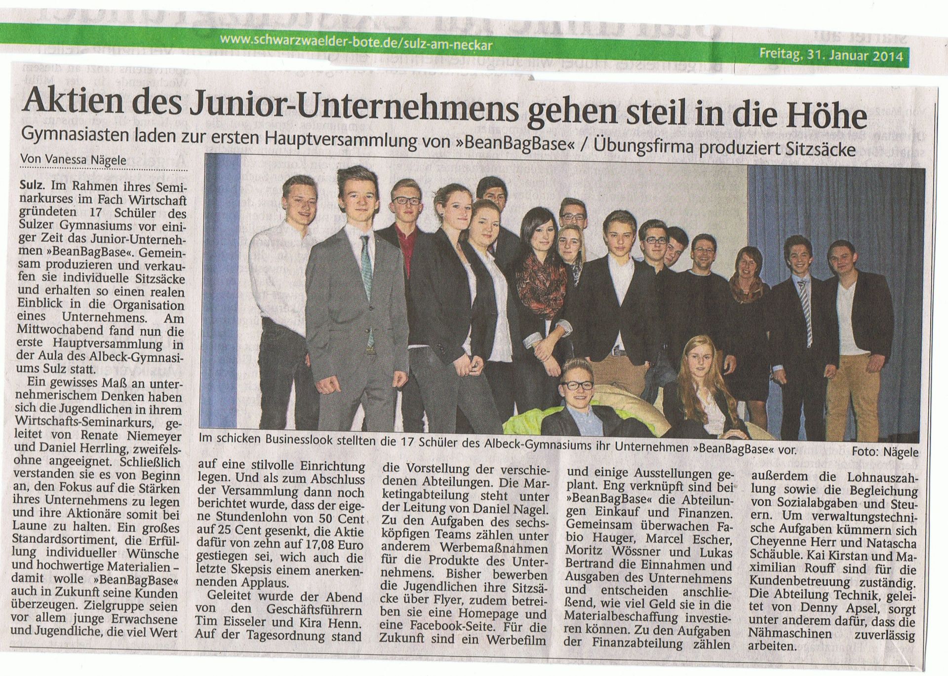 Aktien des Junior-Unternehmens gehen steil in die Höhe (SchwaBo 31/01/2014)