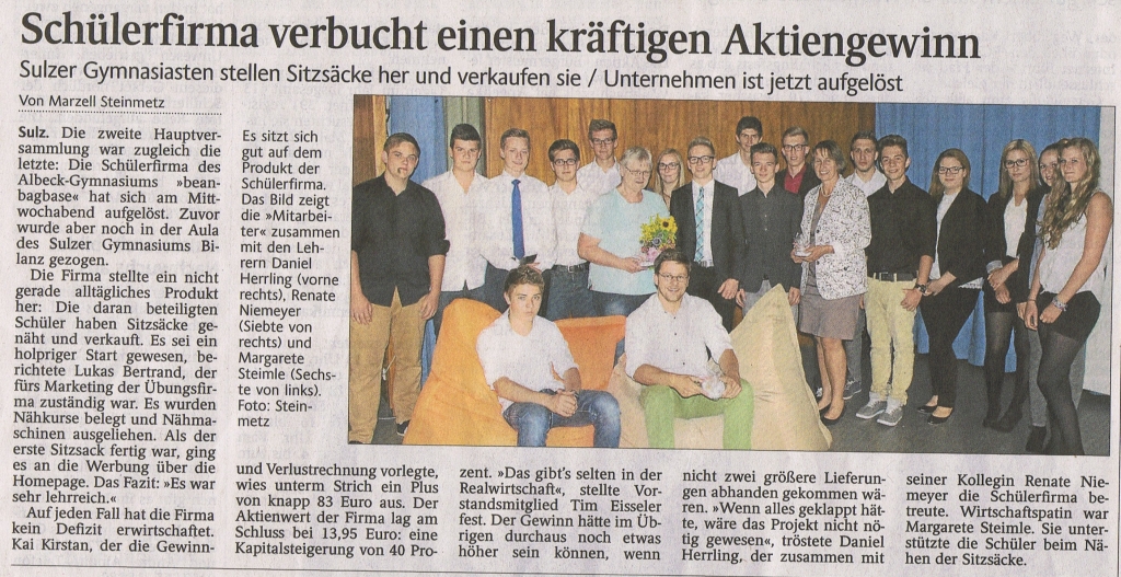 Schülerfirma verbucht einen kräftigen Aktiengewinn (SchwaBo 25/07/2014)